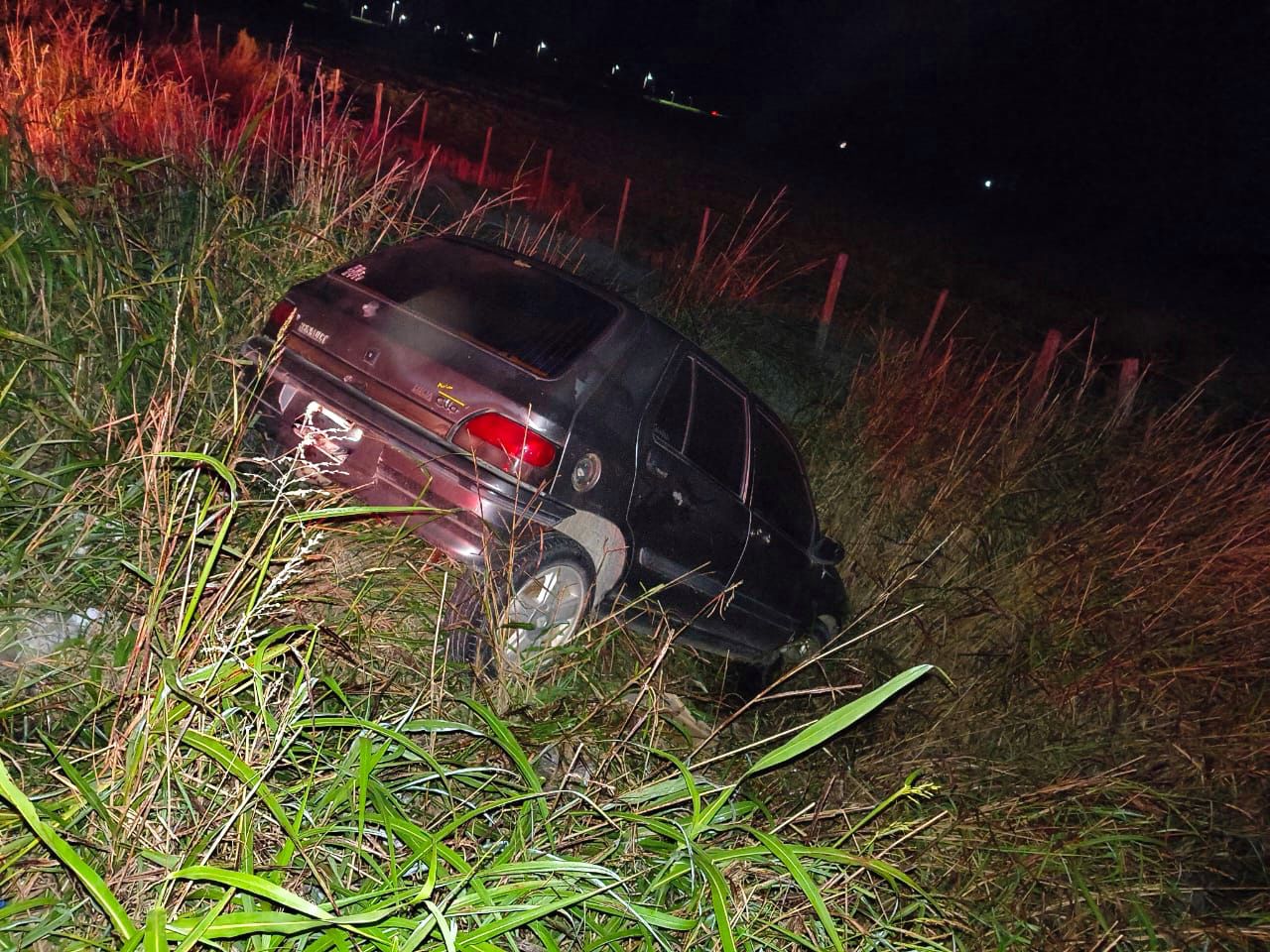 Por causas que se desconocen, un automóvil Renault Clio, conducido por un masculino y único ocupante, terminó su recorrido dentro de una zanja de considerable profundidad, la cual contenía una importante cantidad de agua.