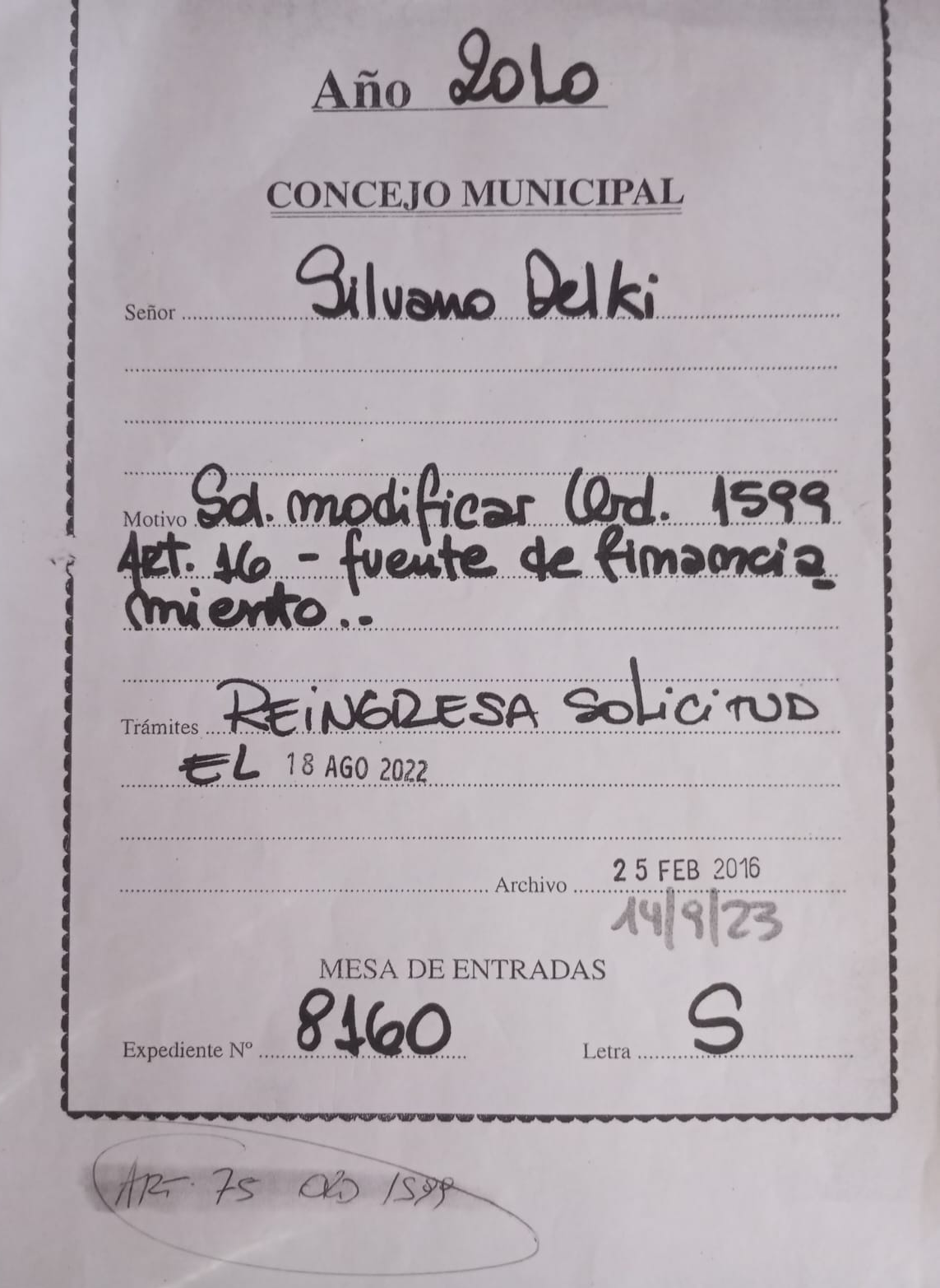 En resumen, dicho pedido a Santa Fe, vuelve FAVORABLE al requerimiento de SILVANO y anécdota de los hechos dicen que una CONCEJAL MUY LIGADA AL DEPARTAMENTO EJECUTIVO entre dientes sentenció “NO LE AVISEN A SILVANO” y así fue, ya que el Jubilado Solicitante tuvo que VOLVER a presentar el pedido el día 18 de agosto del año 2022 y aún así nunca se trató. Como frutillita del postre y con fecha 14 de Setiembre de 2023 firmado por Marcelo Néstor CASALEGNO presidente del Honorable Concejo Deliberante y Georgina TENIS, secretaria, y en virtud con lo dispuesto en el R. I. (reglamento interno) del HCD según lo dispone el artículo 167 se proceda al archivo por PERDIDA DE ESTADO LEGISLATIVO-