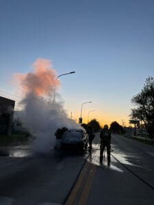 A las 6:25 hs se recibió un llamado informando sobre el incendio de un vehículo en Ruta 9 y Mitre. Al arribar al lugar, se constató que se trataba de una Ford EcoSport, conducida por un masculino domiciliado en nuestra ciudad.
