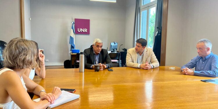 El intendente Matías Chale, junto a parte de su equipo de trabajo, mantuvo una importante reunión con el rector de la Universidad Nacional de Rosario, Franco Bartolacci, con el objetivo de avanzar en la creación de un Punto UNR en la ciudad.