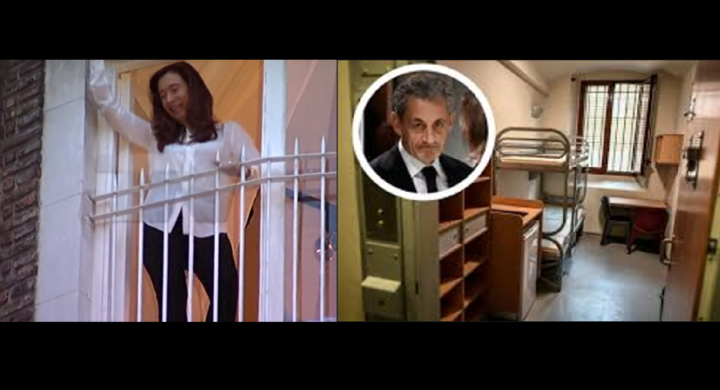 Sarkozy, presidente de la segunda potencia europea, purga su condena en la prisión de La Santé, en una celda de 11 metros cuadrados, donde se observa una cama adosada a una pared, un estante a modo de escritorio, una pequeña tv, una pequeña heladera, una cocinita eléctrica, elementos de limpieza, dos mantas, una toalla, un teléfono fijo, nada de celulares. Puede recibir tres veces por semana solo la visita de su familia, mientras pasa el día en soledad en su celda, con dos salidas diarias al patio, al igual que el resto de los reos.