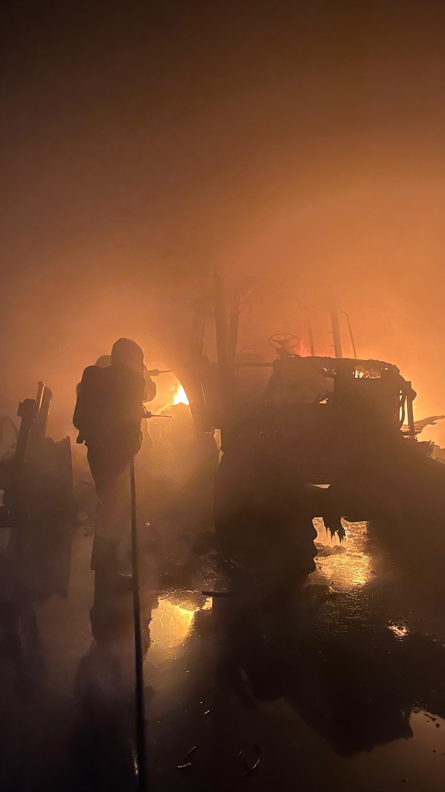 Al llegar al lugar, tres dotaciones con dos camiones cisterna se encontraron con el fuego totalmente declarado en una de las estructuras del predio, donde había tres tractores, una camioneta, herramientas e insumos agrícolas.