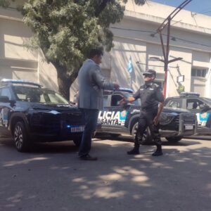 🔹En continuidad con las entregas de vehículos policiales iniciadas en 2024, prolongadas durante todo el pasado año y en la seguidilla iniciada durante el transcurso del presente, móviles distribuidos en forma progresiva en todo el territorio provincial por el Gobierno de Santa Fe, a través de la gestión del Ministerio de Justicia y Seguridad, el Sr. Jefe de Policía, Director Gral. de Policía Lic. Luis Maldonado recibió de manos del Sr. Gobernador, Lic. Maximiliano Pullaro, nuevas unidades que fueron entregadas hoy por la mañana frente a la sede de la Jefatura de la Unidad Regional X – Depto. Iriondo y otra ceremonia desarrollada casi simultáneamente sobre la explanada de la Jefatura de la Unidad Regional XIX – Depto. Vera.